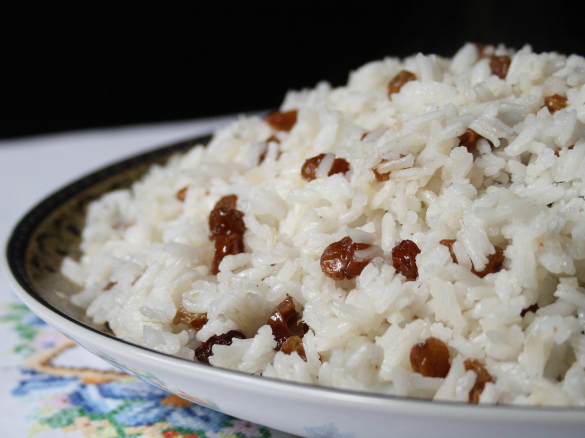 “Arroz de festa” ou “arroz com passas” é o arroz branco enriquecido com vinho branco e uvas passas. É um ótimo acompanhamento para o peru de natal, tender, assados e peixes.